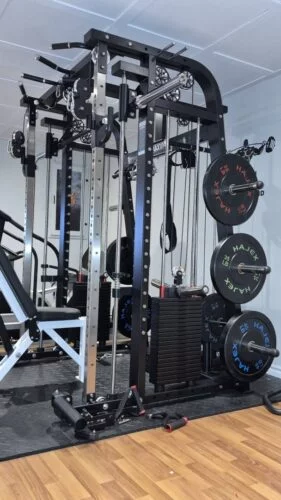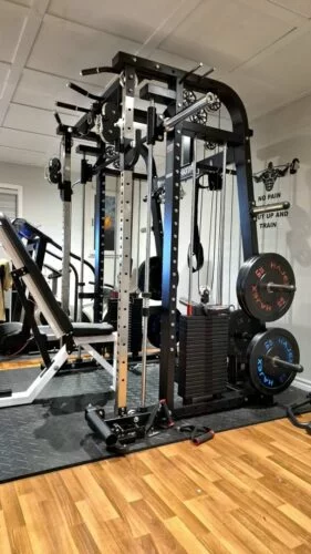 This machine offers nearly endless variety with the cables, smith machine and free weight options. It is well made and very solid once put together. I think itโll be able to handle whatever I can throw at it for a long time.